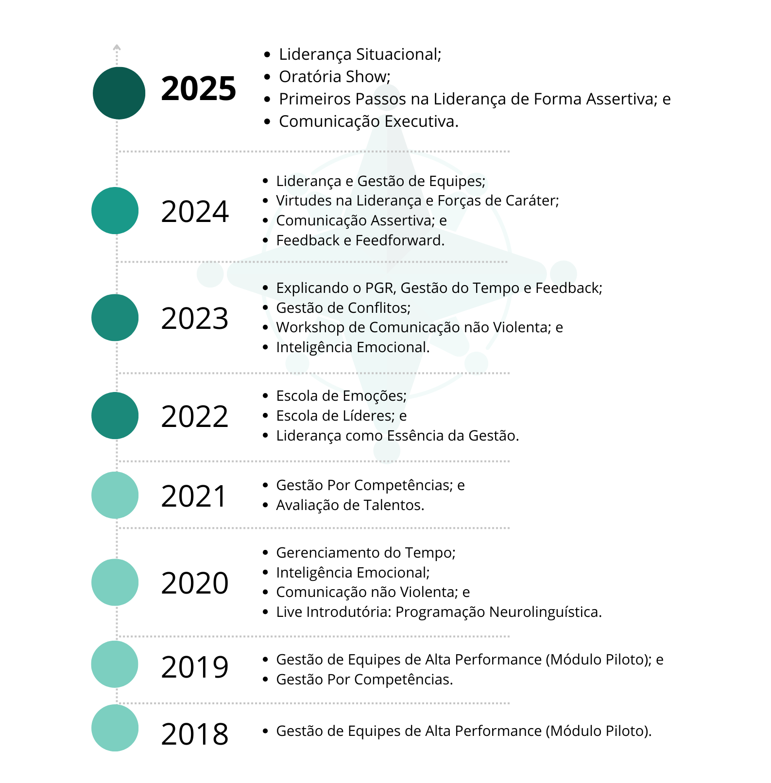 Desenvolvimento de competências voltadas à liderança de equipes e melhoria do desempenho coletivo.