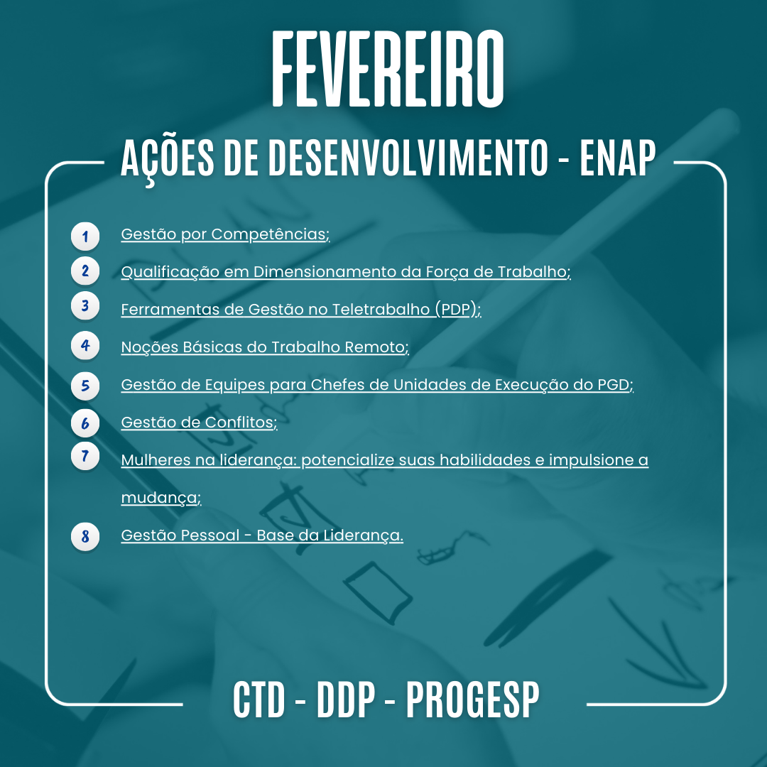 DDP Indica: Ações de Desenvolvimento ENAP (Fevereiro)