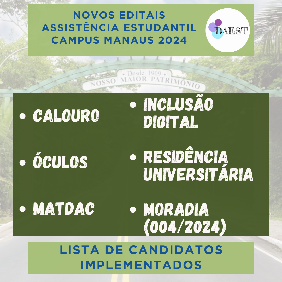 DAEST DIVULGA LISTA DE CANDIDATOS IMPLEMENTADOS - AUXÍLIOS 2024/2 (MANAUS)